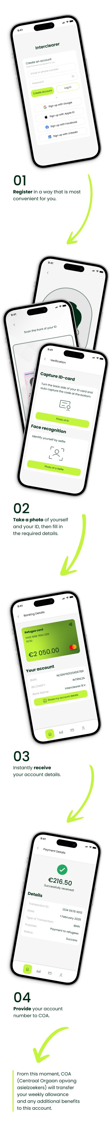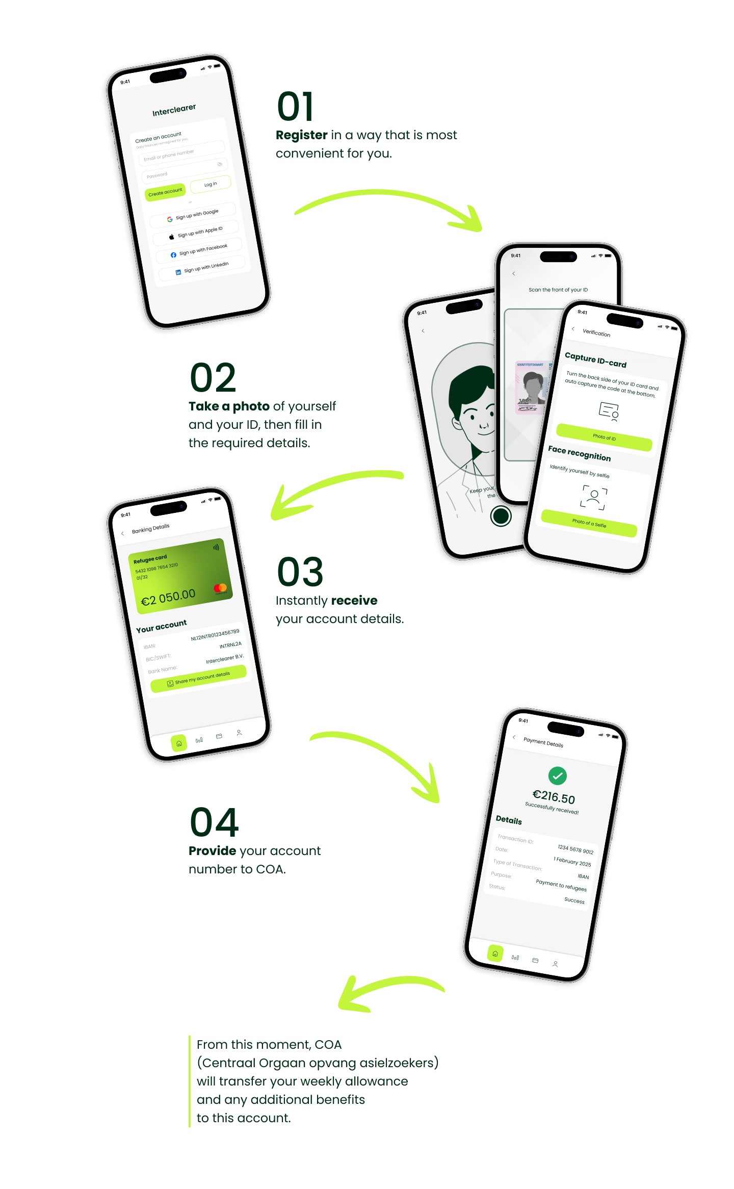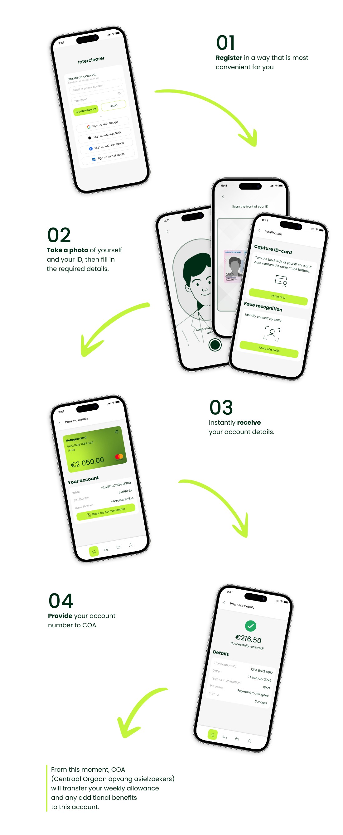 Get a payment card and IBAN account as an asylum seeker in the Netherlands. Complete KYC verification with your refugee ID and receive COA financial support directly on your card.